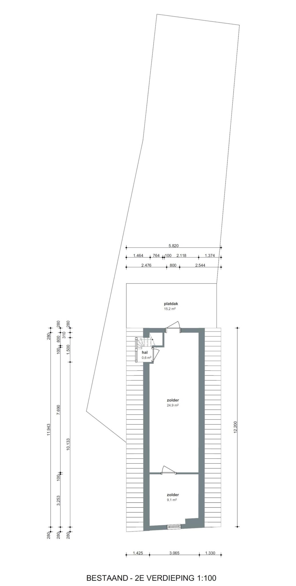 Op de tweede verdieping treffen we één grote zolderruimte van circa 36 m² die je naar eigen idee kan indelen